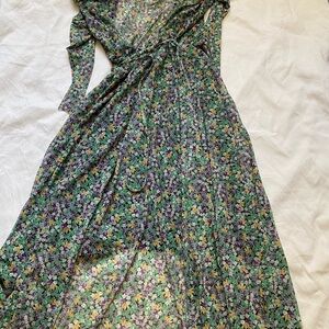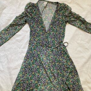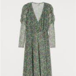H&M Green Floral Long Sleeve Mesh Wrap Dress Size Small