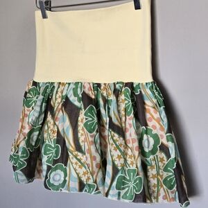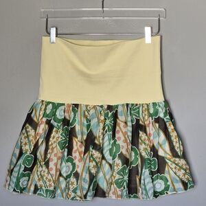 H&M Green Floral Print Ruffle Women's Pull-On Mini Skirt Size 8