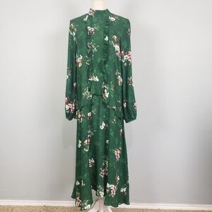 H&M Green Floral Ruffle Midi Dress Ltd Edition Cottagecore Boho Sz 4