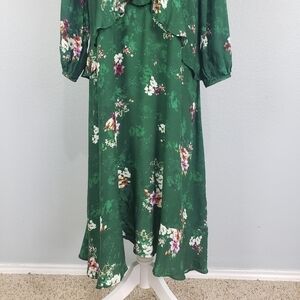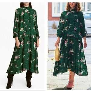 H&M Green Floral Ruffle Midi Dress Ltd Edition Cottagecore Boho Blogger Fav Sz 4
