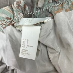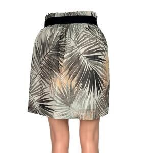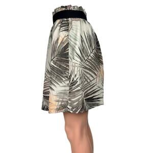 H&M Women's 100% Polyester Green Gray Palm Tropical Print Stretch Beach Summer Elastic Waist Pull On Mini A Line Skirt Sz 6