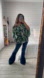 Stylish off-shoulder blouse with green leaf print. Flowy sleeves. Perfect for casual outings.