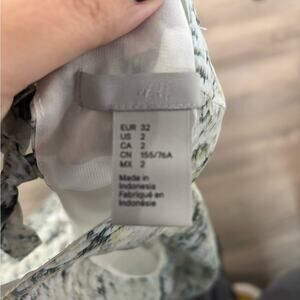 This H&M green printed sleeveless blouse features a stylish and airy design with delicate back cutouts and a tie detail for added charm. This blouse offers a flattering and breezy fit.