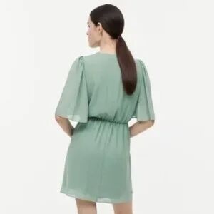 This chic green sundress from H&M features a flattering ruched and smocked design, perfect for a wedding guest or cocktail event. The short flutter sleeves and crew neck add a touch of elegance, while the mini length keeps it playful and stylish.