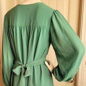 Perfect like-new condition. Flowing crepe-like fabric. Lined and semi-sheer, lined. Great little St. Patrick's Day dress.