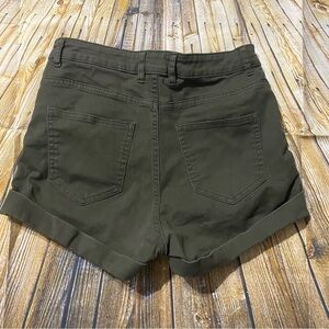 H&M Green Stretch High Waisted Cuffed Shorts