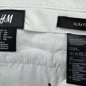 The H&M Grey Dress Pants are a sleek and stylish addition to any man's wardrobe. With a slim fit design and a size of 40R, these pants are tailored to provide a flattering silhouette. The slimming features make them a versatile and flattering option for various occasions. The grey color adds a modern touch to any outfit, while the dress pants style offers a formal and polished look. Perfect for professional settings or smart-casual events, these pants are a must-have for the modern man looking for a classic and sophisticated wardrobe staple. They definitely fit slim.