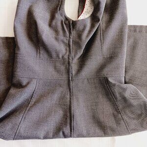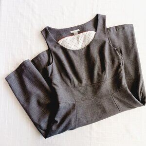 H&M grey fit & flair scoop neck dress with adorable burgundy polka dot lining. The original belt is missing; however, any thin style black belt would look good!