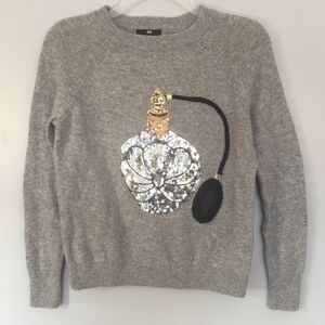 H&M Grey Sequin Perfume Bottle Holiday Sweater XS