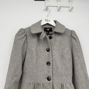 H&M Grey Wool Blend Button Front Peacoat Jacket Coat Size US 4 Preppy