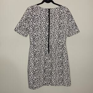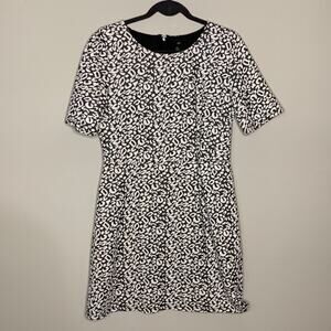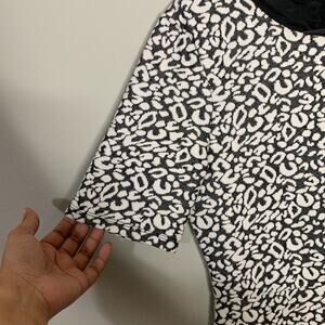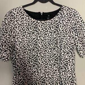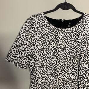 Description: Short sleeve fit and flare dress by H&M. Grey and white animal print pattern all over. Exposed zipper in the back.