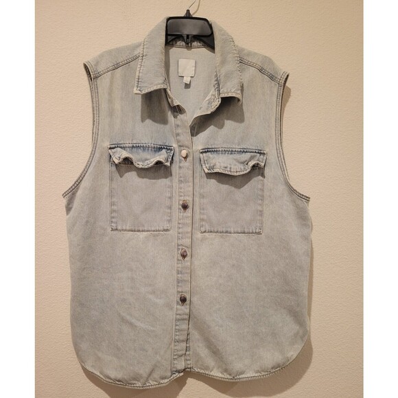 HM H&M Blue Denim Sleeveless Jacket Oversize Waistcoat Pocket Jean Vest Women XL