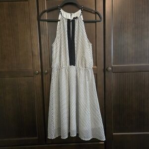 H&M Halter Dress Geometric Black White Chiffion Wedding Guest Size 4