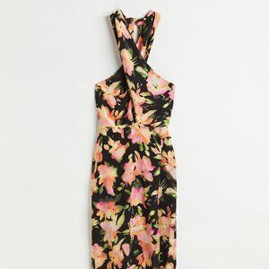H&M Halterneck Wrap Dress - Black/floral - Ladies XXL