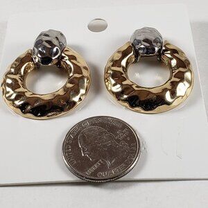 H&M Hammered Silver and Gold tone Chunky Hoop Teardrop Earrings