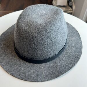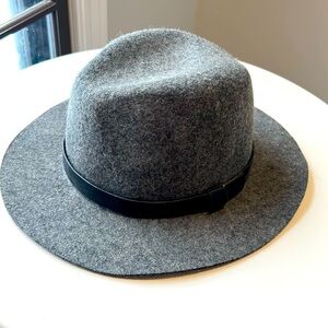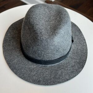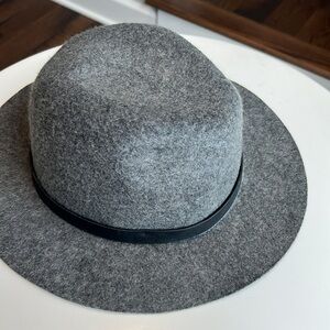 H&M Heather Gray Fedora Hat 100% Felted Wool with Vegan Leather Black Belt EUC.