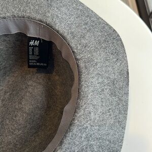 H&M Heather Gray Fedora Hat 100% Felted Wool with Vegan Leather Black Belt EUC