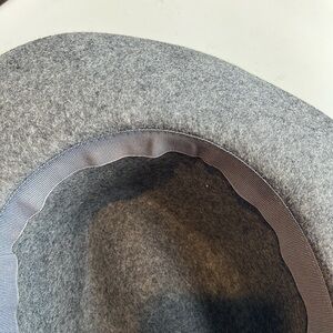 This hat is in great condition and is more of a fedora because of the narrower brim than that of traditional floppy wide brim hats. Black vegan leather belt around the hat. A beautiful variegated gray color. This hat will be shipped in a box to ensure it is not crushed or damaged during shipping. Beautiful accessory to add to your outfits!