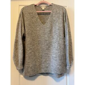H&M Heather Gray Raglan Long Sleeve V-Neck Sweater, Women's Size M