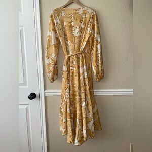 H&M High Low Midi Wrap Dress Yellow Ivory Artsy Abstract Print Size Small