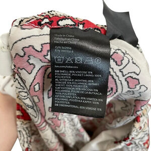 H&M High Rise Wide Leg Paisley Pull On Pants in White/Red Size M