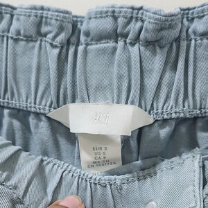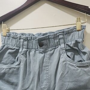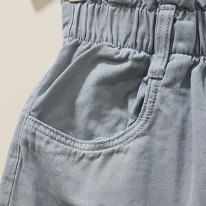 These high-waisted blue shorts offer a relaxed fit with a soft, worn-in feel, perfect for a casual summer day. The elastic waistband ensures comfort and style, making them a versatile addition to your wardrobe.