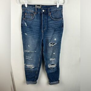 H&M High Waist Mom Jeans Distressed Ankle length Button Fly Size 4 New