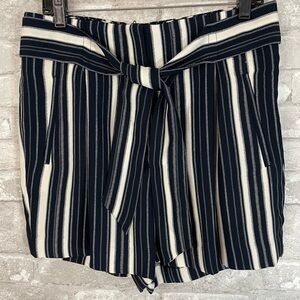 H&M paper bag striped shorts Attached matching belt Inseam- 3” Rise - 13” Front pockets Faux back pockets New with tags T23