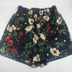 H&M - High Wasted Black Floral Paper Bag Short Size 4