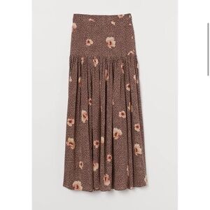 H&M High-Rise Brown and Pink Floral Print Boho Maxi Skirt size 2