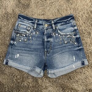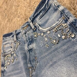 Stylish denim shorts with elegant embellishments. Perfect for casual outings. Button fly. NWOT. No missing stones.. I double checked.😉