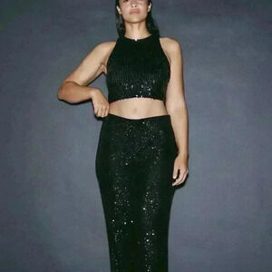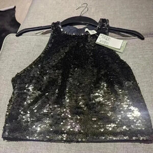 H&M Holiday Sequined Racer back Gray Crop Tank Top - size Medium NWT