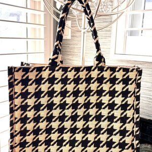 NWOT H&M Houndstooth Shopper Tote Bag. Perfect for Fall/ Winter!! Color: Black/Light Beige. This tote is currently sold out at H&M. Handbag in a jacquard-weave cotton blend with two handles. Inner compartment with zipper. Lining in cotton twill. Depth 6 1/4 in. Height 12 1/2 in. Width 16 1/4 in.