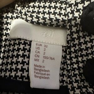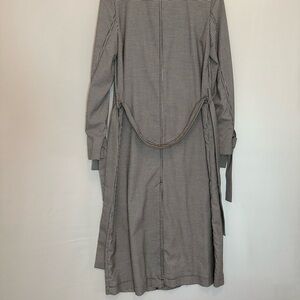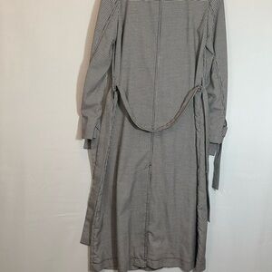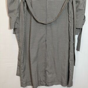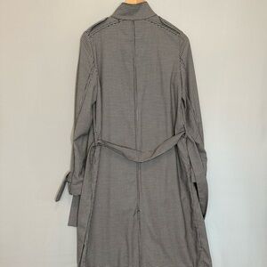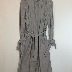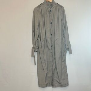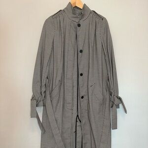 H&M Houndstooth Size 2 Long Trench Coat Belt Front Buttons Back Slit Pockets