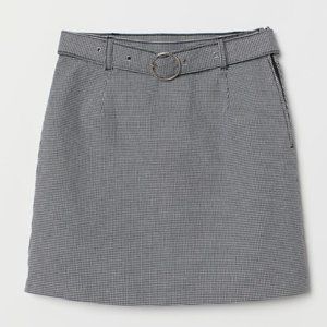 A-line skirt in woven cotton fabric with a concealed side zip. Removable, matching belt with metal buckle.