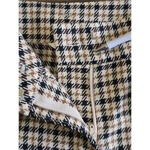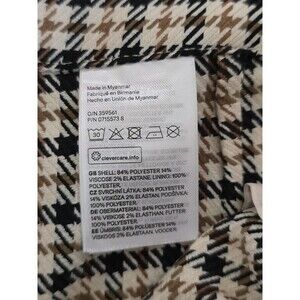 These H&M houndstooth wide leg paperbag pants in women's size 10 are a trendy and comfortable addition to any wardrobe. The belted crop style features a high-rise waist and a flat front design, making them suitable for a variety of occasions from casual outings to workwear or even a party. The beige color and houndstooth pattern add a touch of bohemian flair to the overall look. Made from a blend of polyester and viscose, these pants are machine washable for easy care. Perfect for fall and spring seasons, these pants are a versatile and stylish choice for any fashion-forward woman.