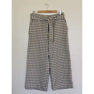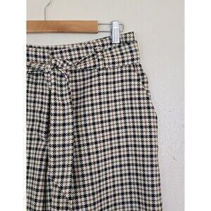 H&M Houndstooth Wide Leg Paperbag Pants Womens Size 10 Belted Crop Trendy