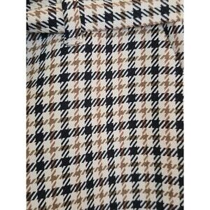 These H&M houndstooth wide leg paperbag pants in women's size 10 are a trendy and comfortable addition to any wardrobe. The belted crop style features a high-rise waist and a flat front design, making them suitable for a variety of occasions from casual outings to workwear or even a party. The beige color and houndstooth pattern add a touch of bohemian flair to the overall look. Made from a blend of polyester and viscose, these pants are machine washable for easy care. Perfect for fall and spring seasons, these pants are a versatile and stylish choice for any fashion-forward woman.