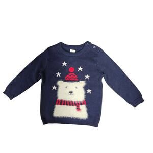 H&M Infant's Navy Pullover Sweater with White Fuzzy Polar Bear NWT 6-9 months