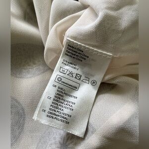 Pretty blouse from H&M; size 10. Excellent condition. Double layer of sheer polyester. Flutter sleeve. Hem slightly longer in back. Ties behind neck. Approximate measurements: