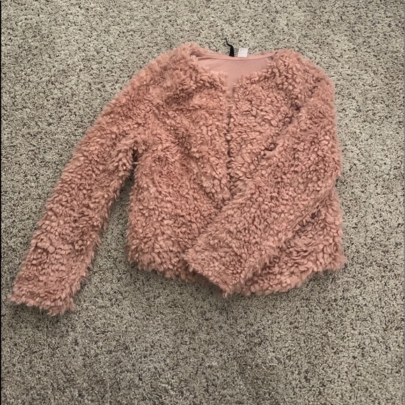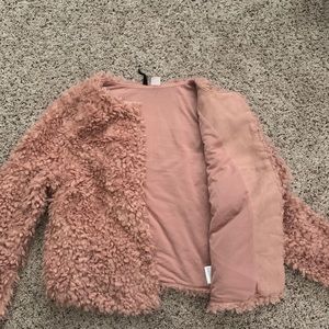 Pink fluffy jacket. So comfy, with pockets! Perfect for a night out or day outside!
