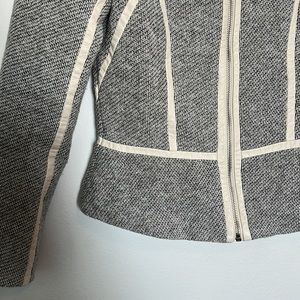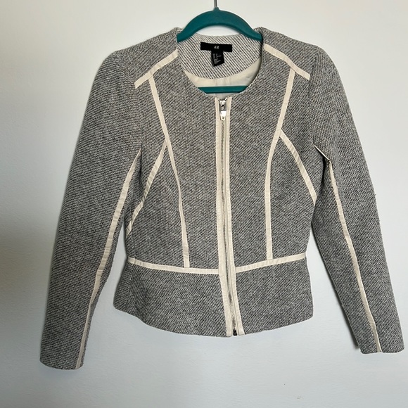 H&M Jacket. Black and white with cream faux leather piping/accents. Fully lined. Mini peplum hem. Excellent used condition - only worn a few times. Size 6, fits like XS.