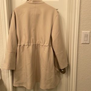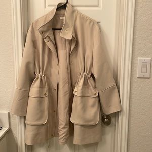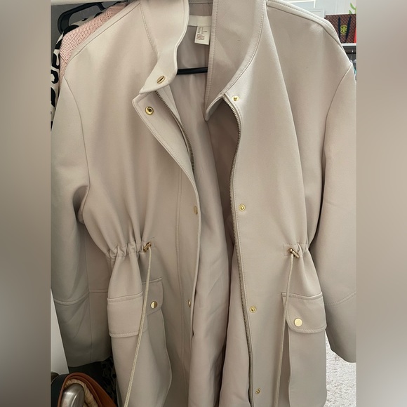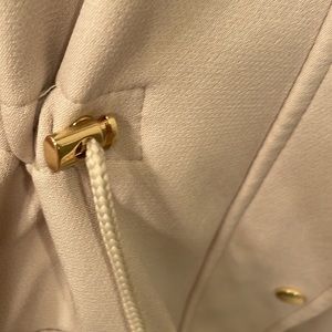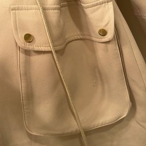 Great condition, some minor snags as seen in pictures. Tag says small, but it should probably be a large. Beautiful cream color with gold snaps. Hardware is not tarnished.