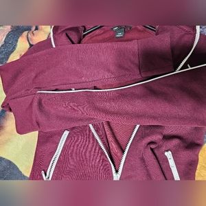 Brand new without tags. Never worn, just sat in the closet for years. Size XS. All zippers work. Kinda like workout clothes material or jogging jacket.
