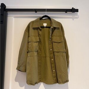 Stylish H&M oversized olive green shacket. Perfect for casual wear.