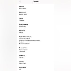 Size 6 H&M Tapered Ankle Jeans