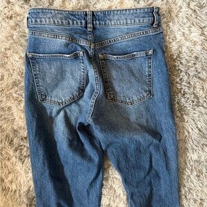 Stylish high rise jeans. Features classic button closure. Perfect for any occasion.