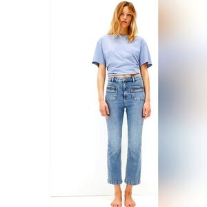 H&M Jeans Stylish Blue Denim Crop High Waist Ruched Pocket Braided Flared Size 6