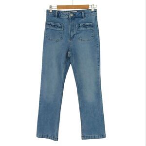 H&M Jeans Stylish Blue Denim Crop High Waist Ruched Pocket Braided Flared Size 6
