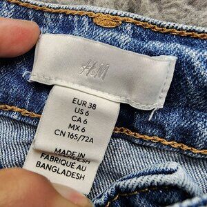 H&M Jeans Womens 6 Medium Wash Stretch Mid Rise Button Fly Wide Leg *GUC*